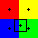 Nun berechnen wir erstmal die "Mischfarben" auf der X-Achse. Nehmen wir Farbe1 für die beiden oberen Pixel - sie bestünde zu 43% (100% - 57%) aus rot und zu 57% aus gelb. Farbe2 nehmen wir für die unteren Pixel, das wären dann 43% blau und 57% grün.